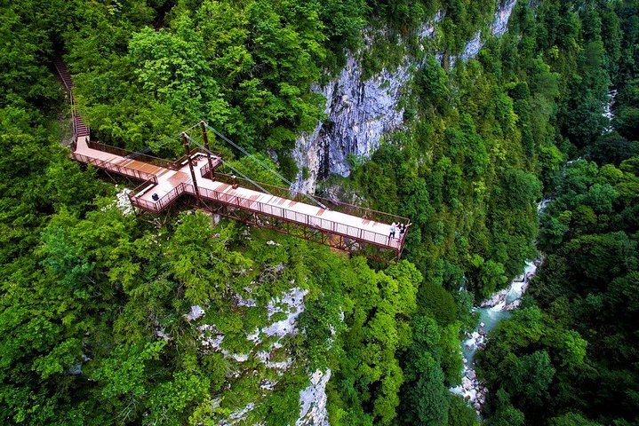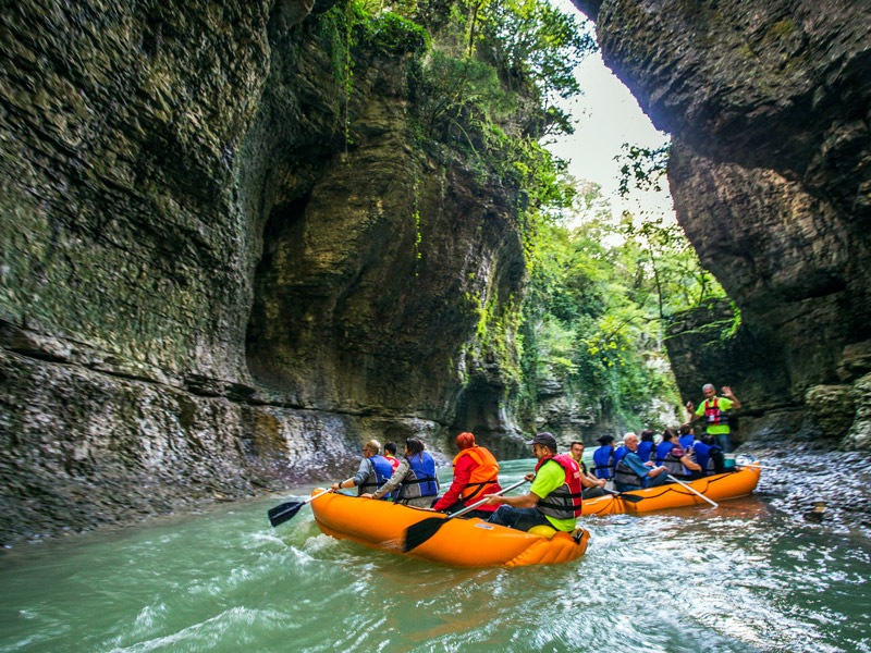 Martvili Canyon – Located in Samegrelo region, Martvili Canyon is a breathtaking natural site with turquoise-blue waters, waterfalls, and steep cliffs. Visitors can enjoy boat rides through the canyon or walk along trails and bridges to admire its unique beauty.